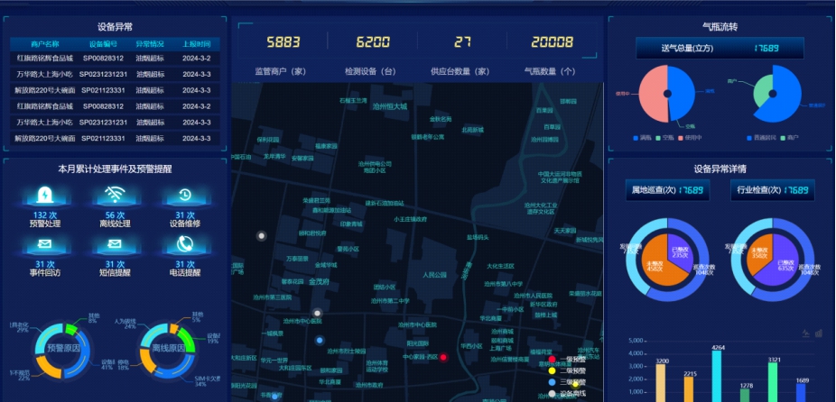 3.动态监控:城市生命线监测预警平台基于实时采集的数据,运用先进的数据分析模型和算法对城市生命线面临的风险进行动态评估,提前预警其可能出现的安全隐患。