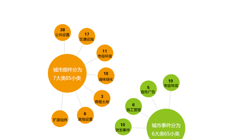 事、部件管理法是指将物化的城市管理对象作为城市部件进行分类精细化管理,对部件相关的权属单位、联系人等信息进行普查,并运用地理编码技术,将城市部件按照地理坐标定位到万米单元网格上,克服原来城市管理无法进行精确定位、责任不明确,难于精细化管理的问题。,实现了城市管理内容的具体化、数字化,实现了问题发现的快速定位。